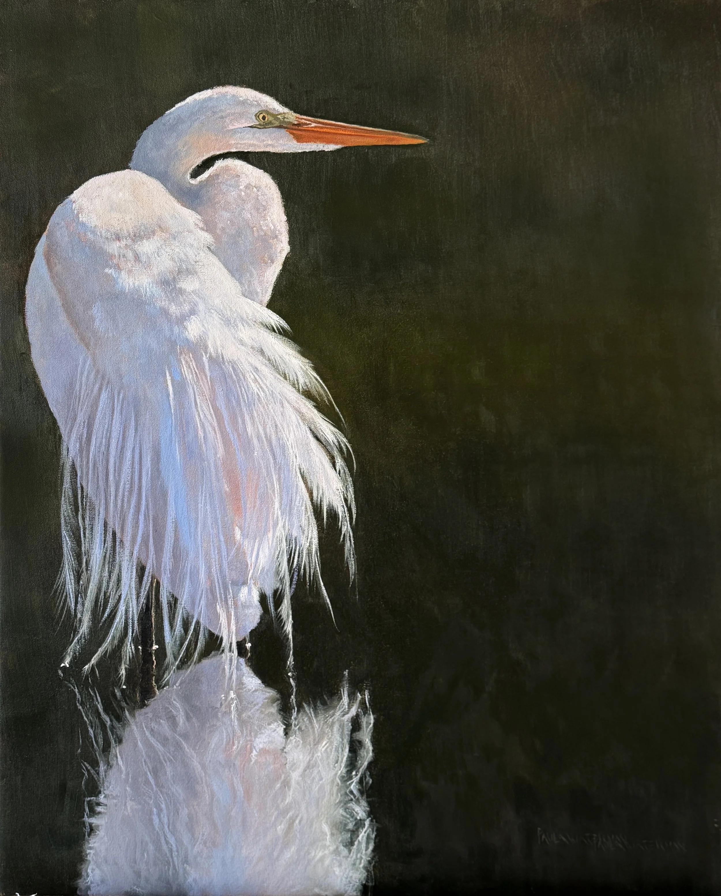 Her approach ranges from portraits of animals to wildlife painted in natural settings. Paula has a particular interest in wading birds, dogs, horses and the large African game animals. A common thread in all her work is the critical importance of the light scource and light color; she says that light is the actual subject in all her work.