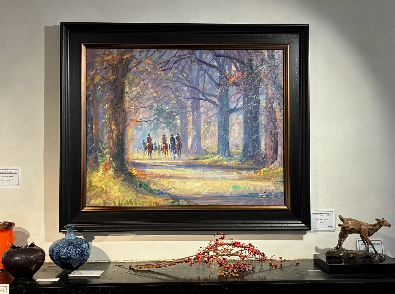 Sam Robinson's paintings, whether of a landscape, a still life, or an equestrian scene, capture the dynamics of the moment. His use of color and energetic, painterly strokes tells a story of mood and movement.